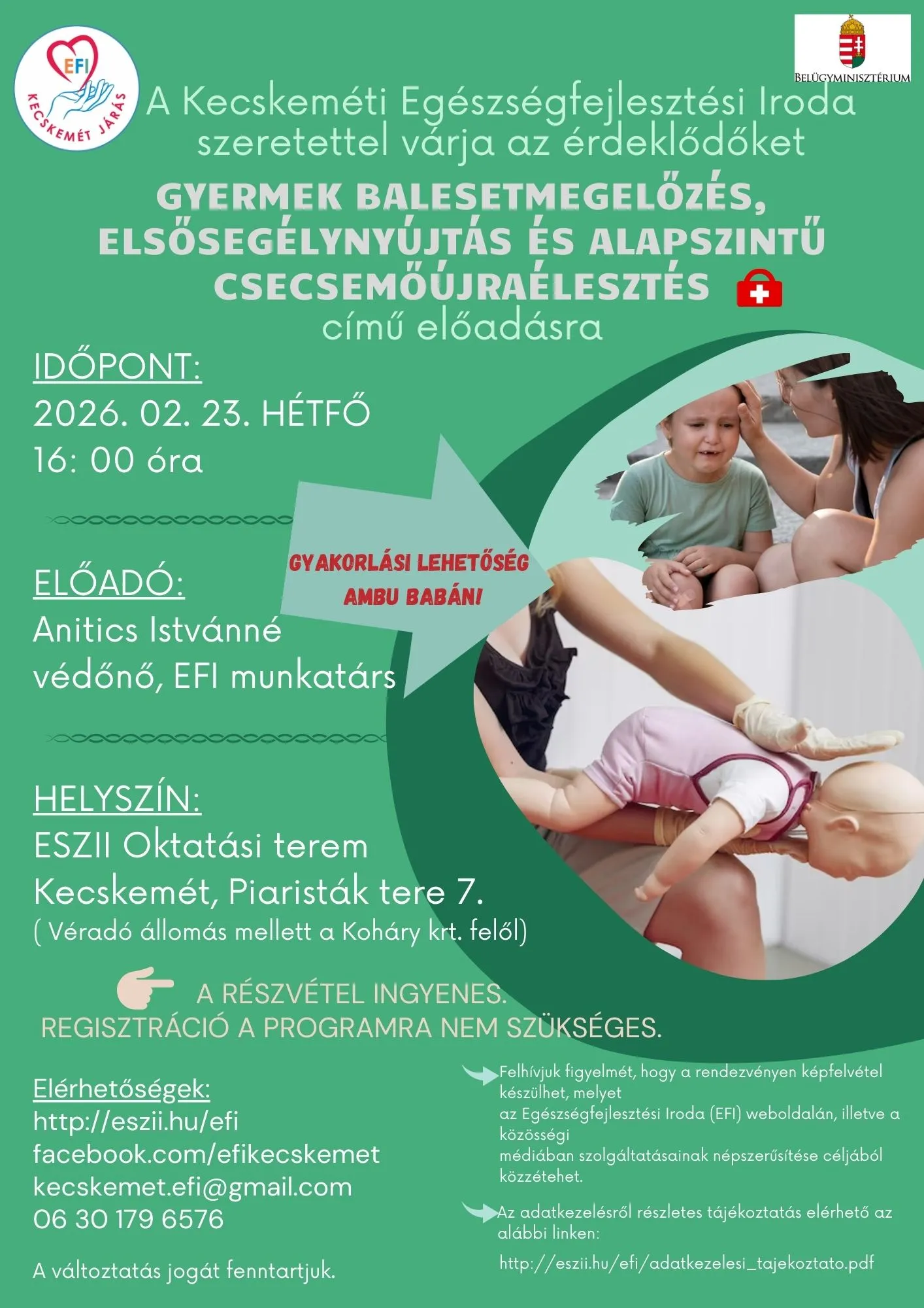 Gyermek Balesetmegelőzés, elsősegélynyújtás és alapszintű csecsemőújraélesztés című előadásra
